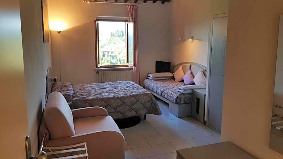 Room with attached bathroom with tiled floors. Offers air conditioning and a TV. There is no elevator. No wi-fi in the dependance.
